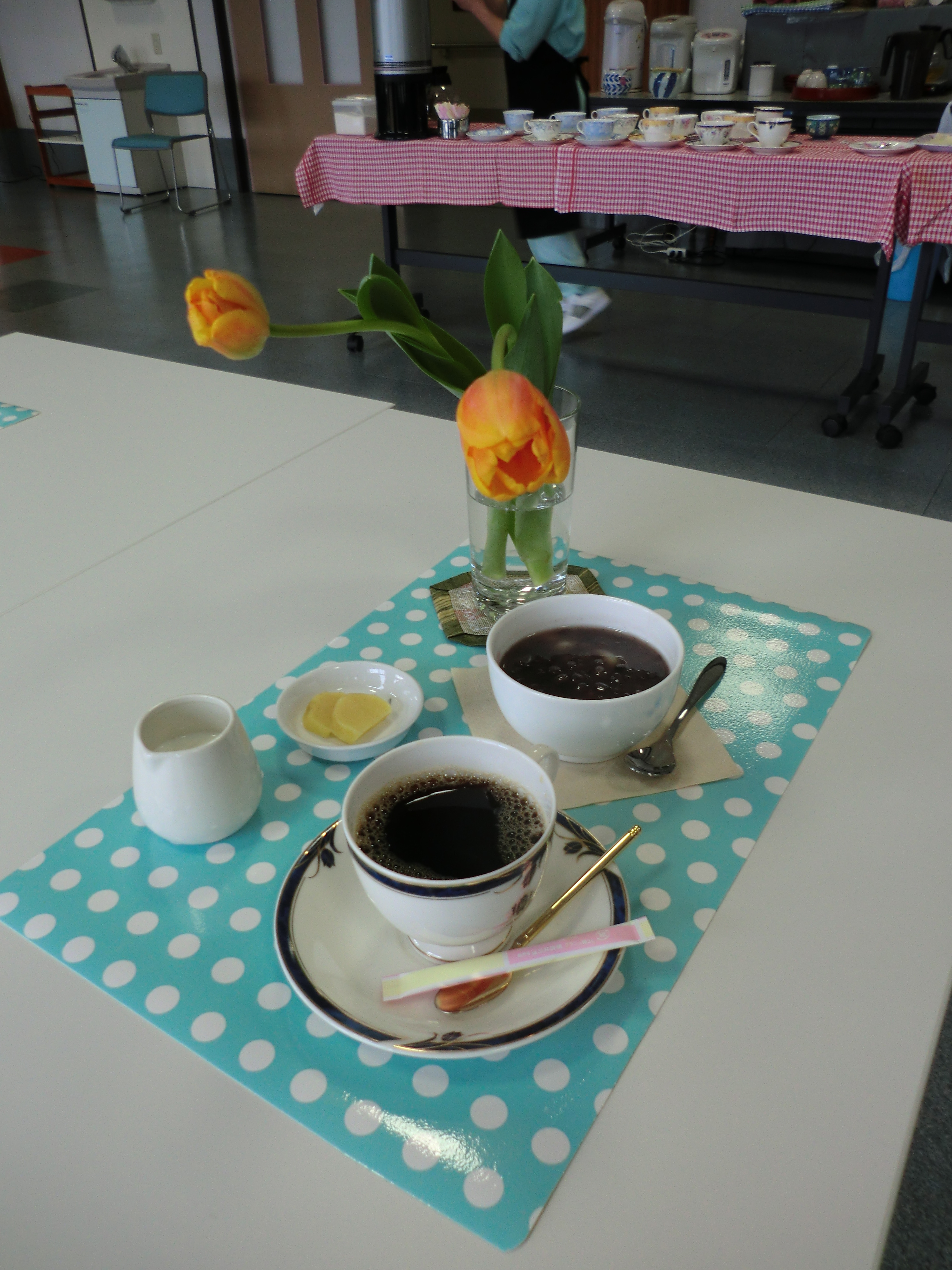 お知らせ 聖マルコ園喫茶1月 2016年1月27日 平成28年1月26日(火)14:00~ 中庭に積もる雪を眺めながら、恒例の喫茶が行われました。 今日のメニューはあたたかいぜんざいでした。 上品な甘さに皆さんとても喜んでいました。 けど、おかわりすると夕食が入らないと悩ましいところです。 テーブルには一足早く春を告げる花を飾って スイートピーの香りも楽しんでいただきました。